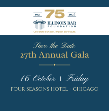 Learn MoreSave the Date – 2026 Gala Friday, October 26, 2026 Four Seasons Hotel Chicago | 120 E. Delaware Place, Chicago Save the Date for our 27th Annual Black Tie Gala, raising funds for the access to justice and lawyers care programs of the Illinois Bar Foundation. More details to come!